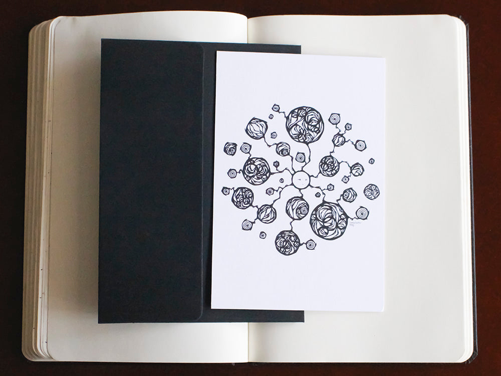 The Package Your Ideas Notecard features one of my earliest Dreamer ink drawings from 2012, a time when I first started exploring the idea of the Dreamer. This design is a reminder to give yourself the solitude and space to breathe, to dream, and to grow.