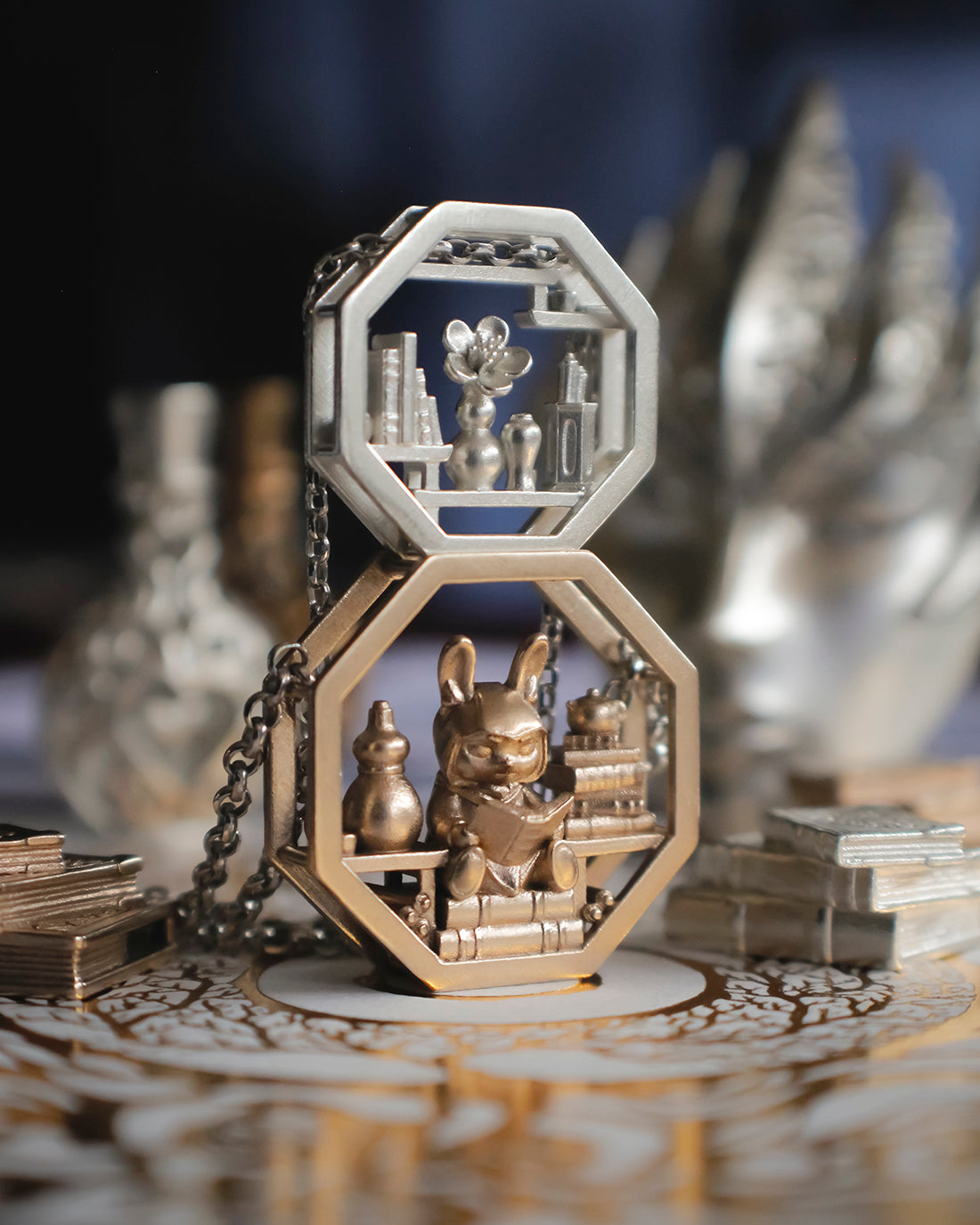 Inspired by Alice in Wonderland’s White Rabbit (and the "Drink Me" potion bottles, which inspired the Vessel of Hope Potion Pendants in the Dreamer Collection), this pendant merges whimsy, introspection, and exploration. Hawthorn was especially meaningful for Fiona, who was born in the Year of the Rabbit (I was born in the Year of the Tiger). We’ve always dreamed of creating rabbit and cat companions that felt like protectors that remind us we’re never truly alone.