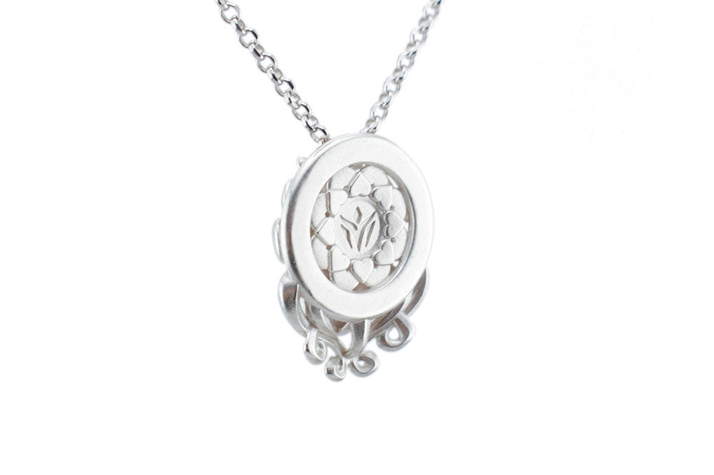 The Sovereign Dreamer pendant is a guardian for your hopes and dreams. Like the Sovereign Dreamer Brooch, it also contains a hidden space to hold personal messages or memories close to your heart. You can complete the set by combining this pendant with the Helping Hands pendant (see last image).