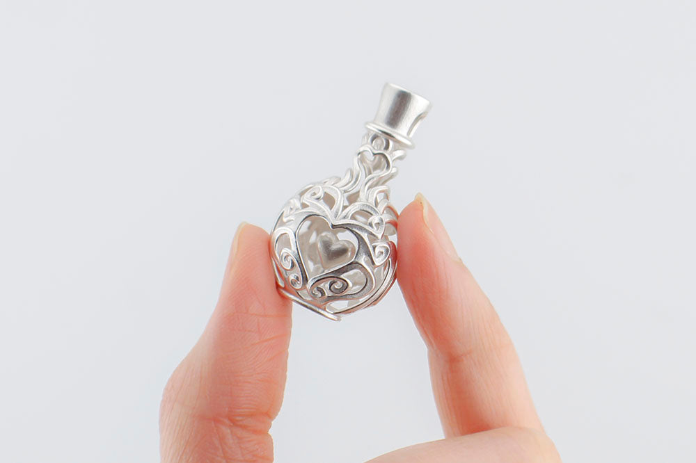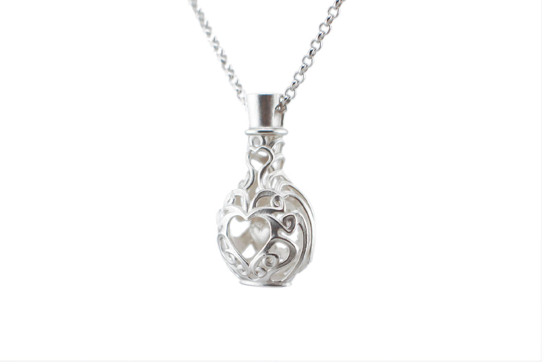 The Vessels of Hope pendant (large) draws inspiration from intricately designed Chinese snuff bottles, once symbols of status and masterful craftsmanship. These vessels embody the strength found in what we choose to carry with us.